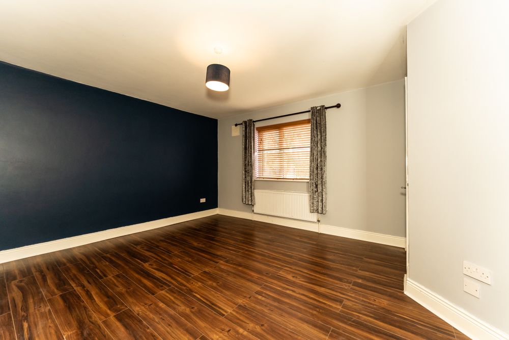 Laminate flooring, solid fuel fireplace with a marble & timber surround.