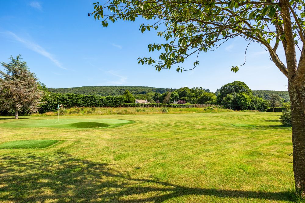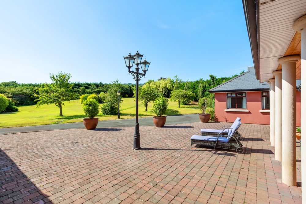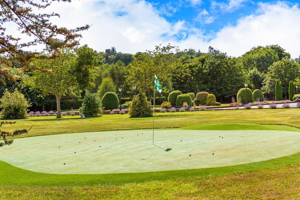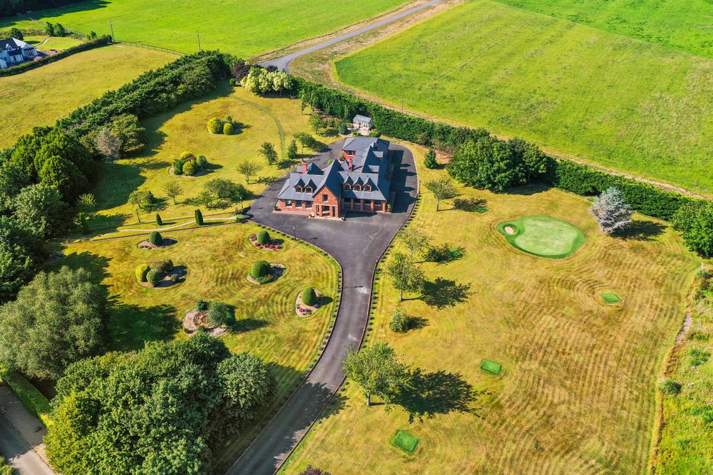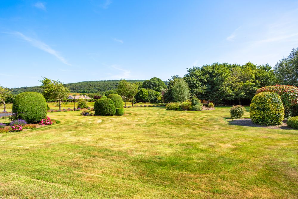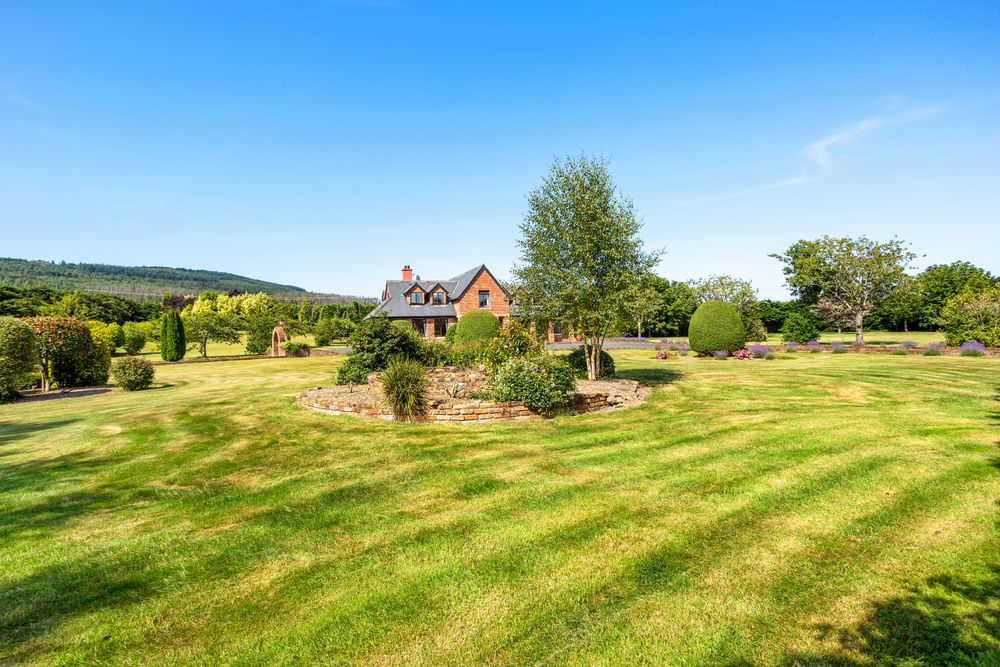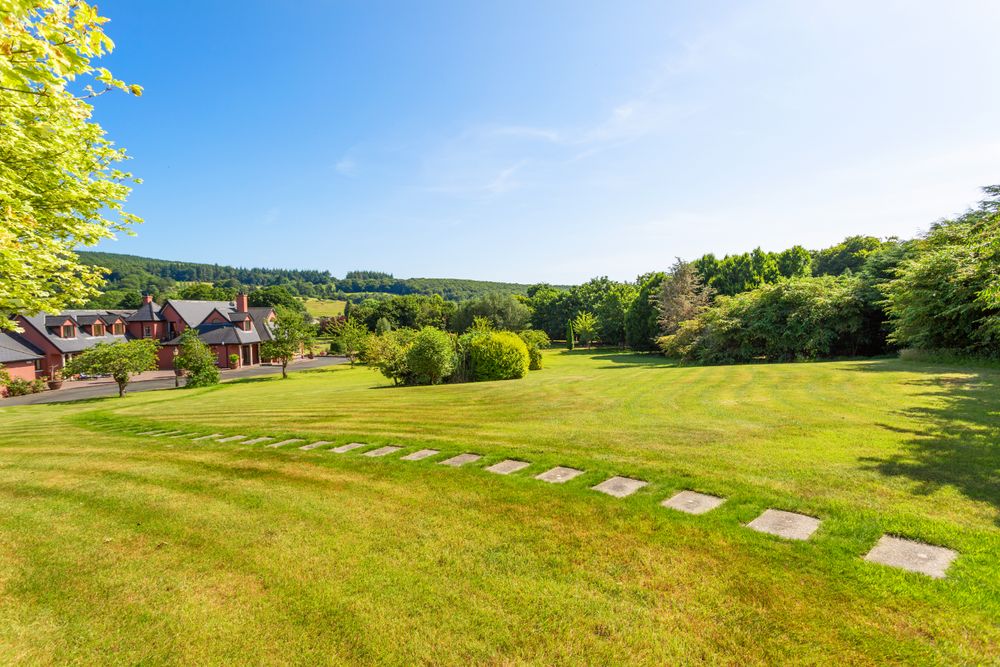 Glenealy House is a substantial country residence set on approximately 4.6 acres of beautifully landscaped grounds on the outskirts of Glenealy village, surrounded by rolling fields, mature woodland and a deep sense of privacy throughout. Approached through electric gates and a sweeping tree lined driveway, the house sits proudly within its setting, framed by manicured lawns, sculpted topiary, mature trees and long views towards the Wicklow hills. The gardens have been shaped with care and purpose, with gentle pathways, sheltered seating areas, a putting green with practice tees and a detached garden room tucked away for quieter moments. It is a wonderfully private estate, yet only minutes from Glenealy and within easy reach of Wicklow Town, Ashford and the N11 and M11 for Dublin.