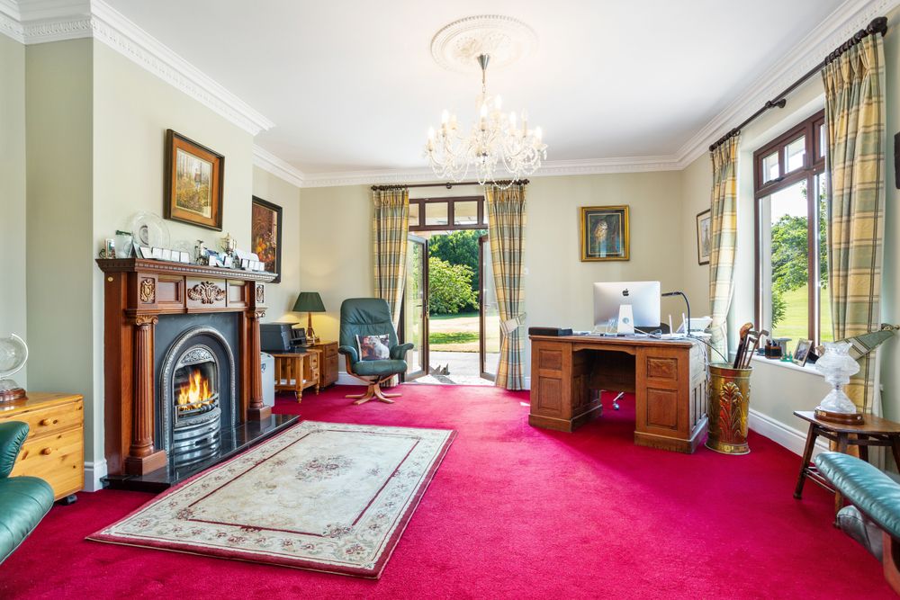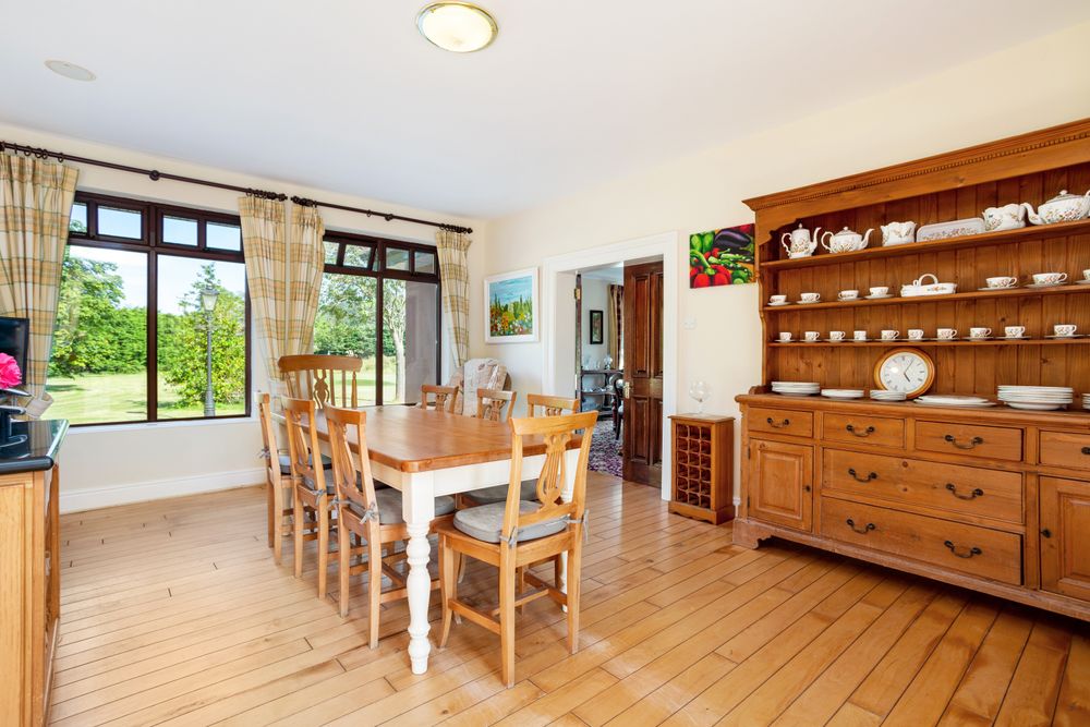 Built in 1999 with classic red brick elevations and a C2 energy rating, Glenealy House extends to approximately 468 square metres or 5,037 square feet of well considered accommodation that suits both family living and large scale entertaining. A gracious reception hall sets the tone with its Waterford Crystal chandelier and introduces a sequence of generous reception rooms including a dual aspect formal living room with feature fireplace and Waterford Crystal chandelier, a cosy family room, a formal dining room and a large kitchen and breakfast room overlooking the gardens. A wine cellar, utility room, guest WC and internal access to the garage complete the ground floor. A superb ground floor bedroom suite with its own entrance offers excellent flexibility for guests, multi generational living or an au pair. Upstairs, four further double bedrooms, all en suite, are arranged around a spacious landing which is also finished with a Waterford Crystal chandelier. The principal suite enjoys impressive proportions and elevated views across the gardens and surrounding countryside which reinforces the sense of a peaceful private retreat.