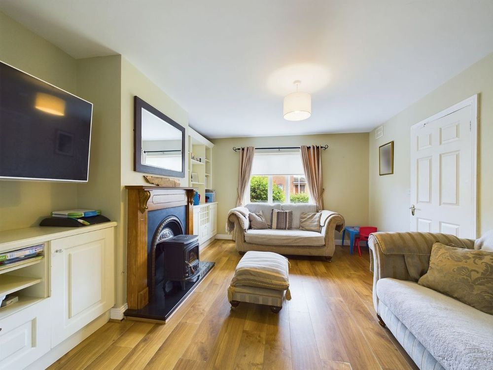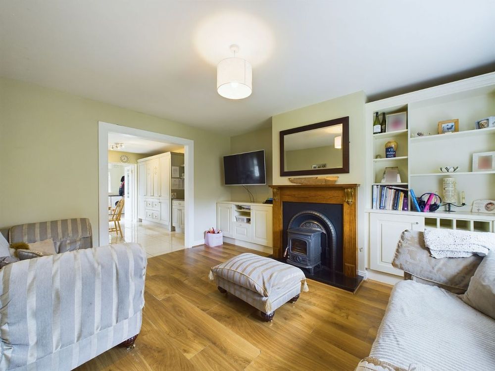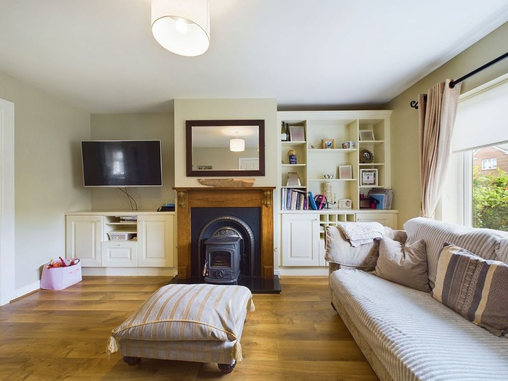The beautiful sitting room with its bespoke cabinetry, hardwood floors, feature freestanding stove and picture window, is the perfect space to relax with all the family.