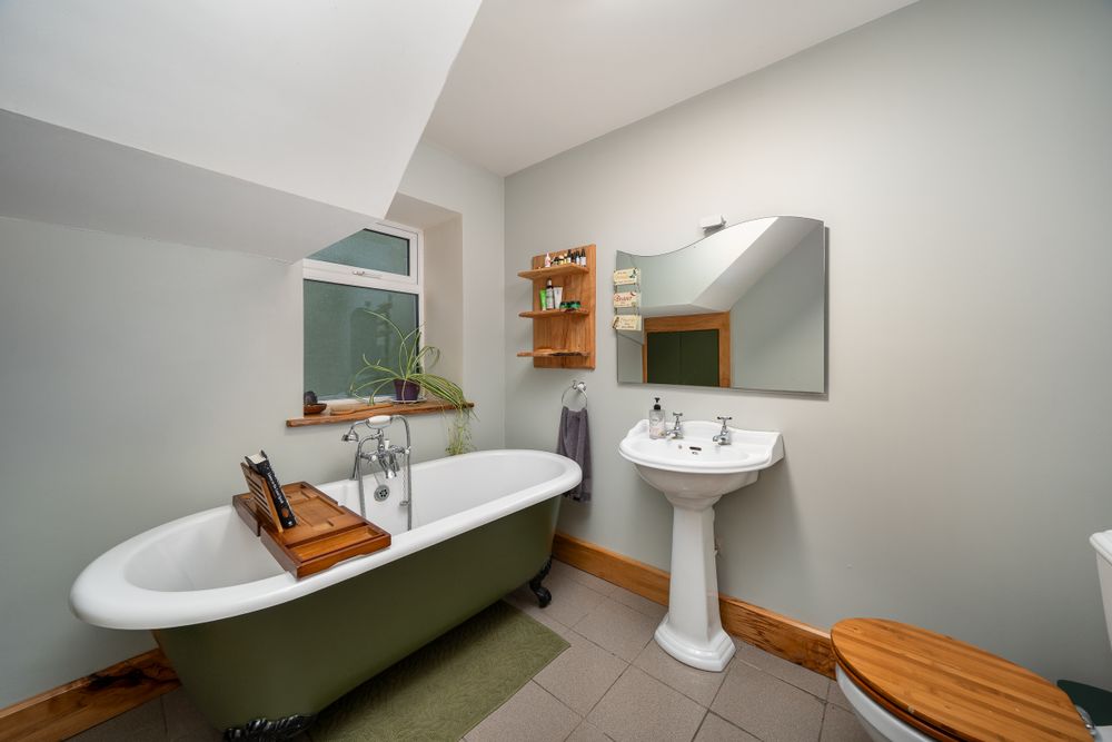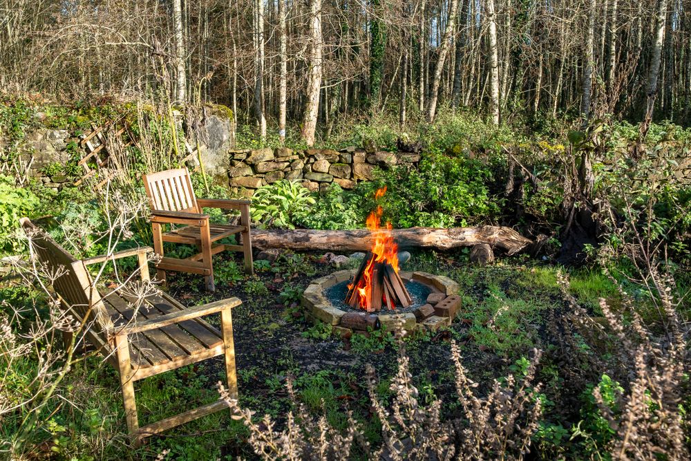 The outside space of this exceptional property is every bit as enchanting as the home itself, offering a rare blend of natural beauty, versatility, and rural charm. Set on c. 3.03 acres of completely chemical-free land, the grounds feature flourishing paddocks ideal for horses or small-scale farming, along with organically nurtured herb and plant gardens bursting with lemon balm, rosemary, mint, fennel, and more. A large cut-stone outbuilding with two stables provides superb facilities for equestrian use or creative workshop potential, while a 3-bay hay shed with generous lean-to and an additional detached outbuilding offer extensive storage or agricultural opportunities. Adding to the character of the holding, a derelict stone cottage invites the possibility of future restoration. With its rolling greenery, mature woodland backdrop, and abundance of natural growth, this outdoor haven creates a peaceful, productive, and deeply inspiring setting for country living.