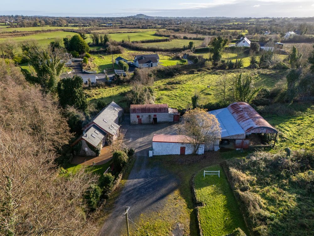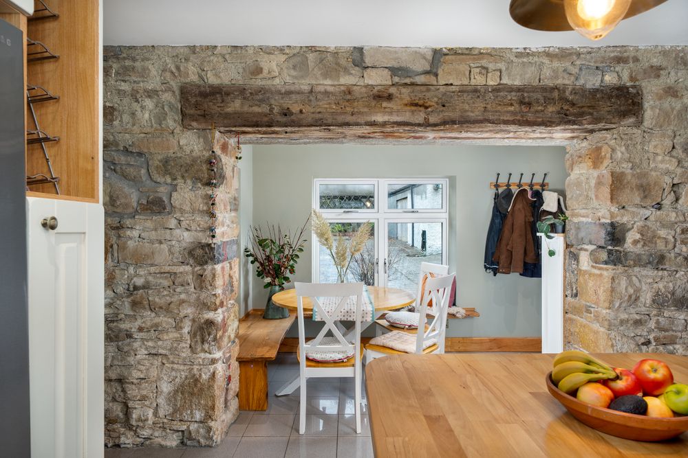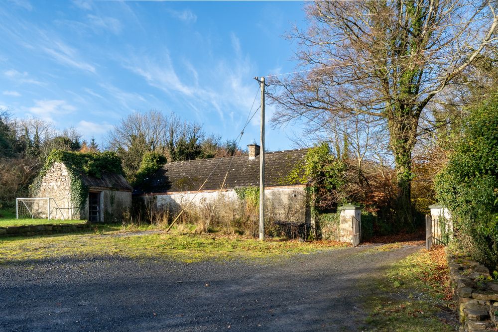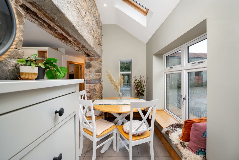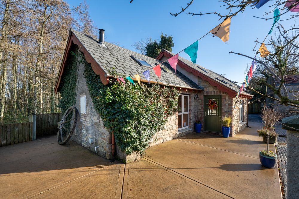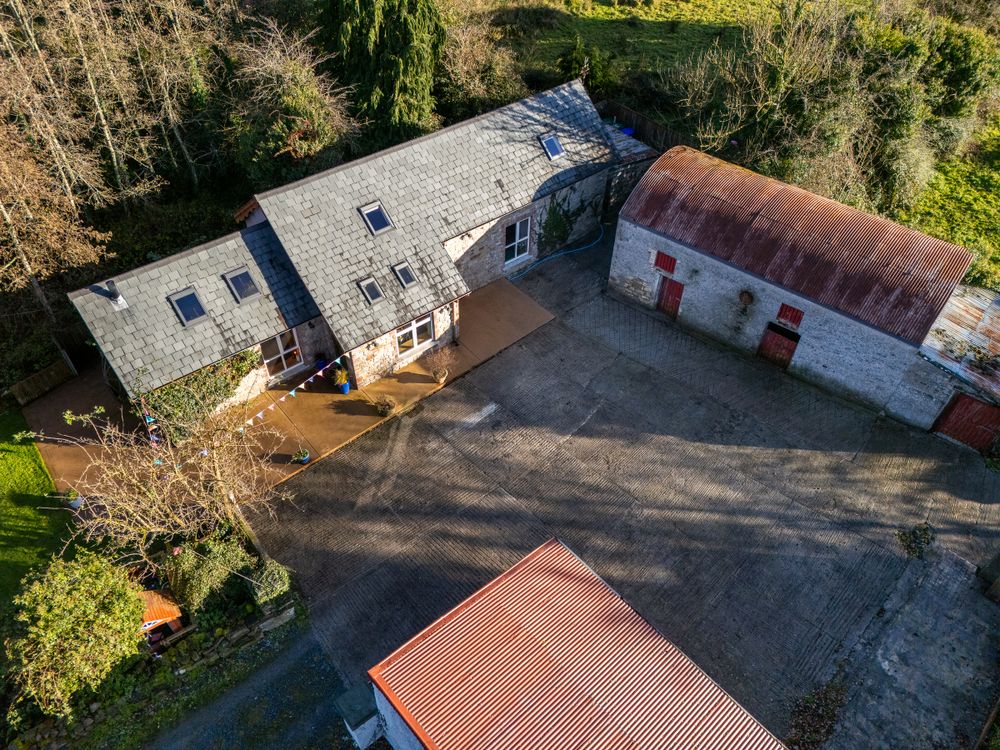 Step into the charm of countryside living with this beautifully refurbished stone-cut cottage, set amid c. 3.03 acres of lush, chemical-free land. Every inch of this residence has been lovingly restored, preserving its heritage while offering modern comfort in an enchanting rural setting. Inside, the heart of the home is the stunning open-plan kitchen/dining room, where original cut-stone walls, timber-beamed ceilings, and a deep-set window frame the woodland backdrop beautifully. This warm, character-filled space comes complete with ample built-in units and a wonderful sense of natural light and texture. The lounge is equally impressive, featuring a dramatic cut-stone feature wall, vaulted ceiling, and a solid-fuel stove with back boiler perfect for cosy evenings in. The home benefits from oil-fired central heating throughout, with the added luxury of underfloor heating on the ground floor, ensuring comfort all year round. Also on the ground floor is a serene main bedroom with ensuite and walk-in wardrobe, along with a stylish family bathroom. Upstairs, two further bedrooms and a shower room provide ideal accommodation for family or guests. A cleverly converted outbuilding houses the utility room just beside the main residence, keeping daily living practical and efficient.