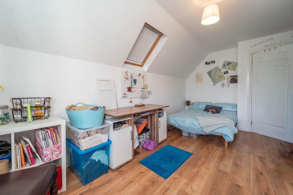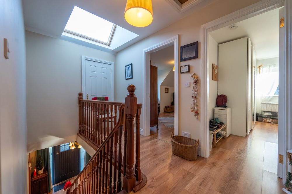 Spacious landing with excellent natural light from a Velux window. Access to the attic; while no staire stairs is currently installed, there is sufficient space for one if required.