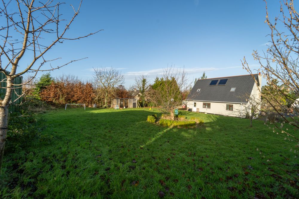 To the rear, a large raised garden takes centre stage—bathed in natural light and enjoying stunning open views. A dividing sub-wall creates definition and versatility, making this expansive outdoor space ideal for children, entertaining, or future landscaping plans.