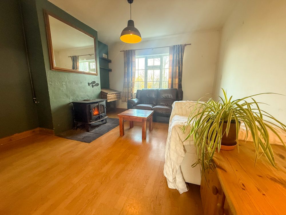 The interior features an open-plan kitchen, dining, and living space with a solid fuel stove, making it ideal for both family life and entertaining and its south west orientation flooding the home with natural light.