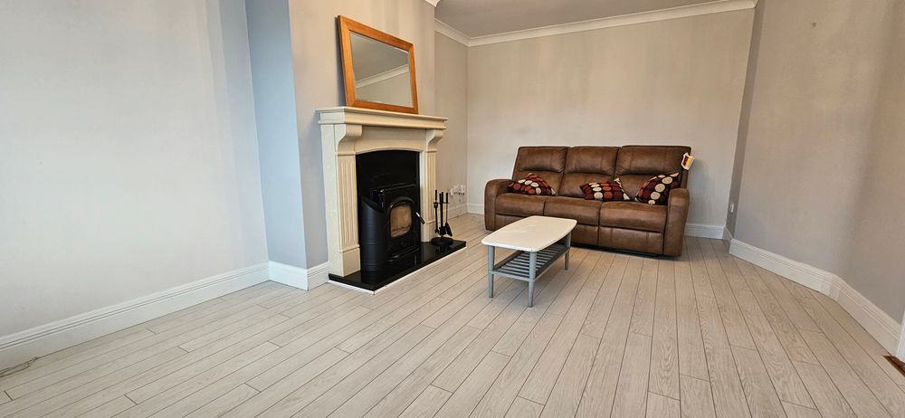 Coving to ceiling, marble fireplace with inset stove and granite hearth, radiator, power points, tc point, fibre broadband connection, laminate floor, bay window.