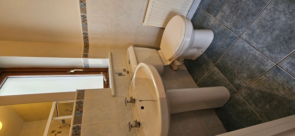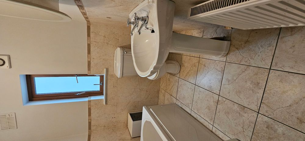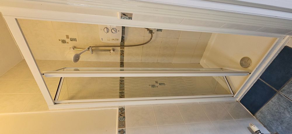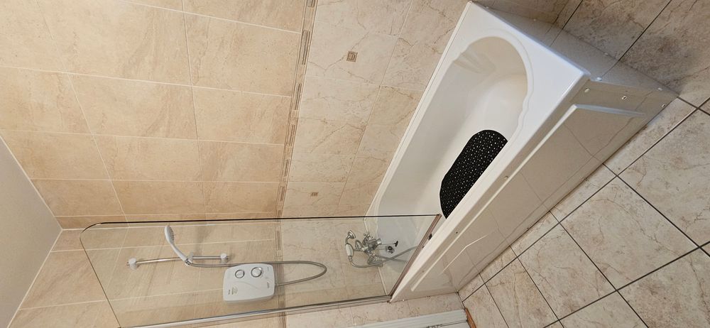 Tiled floor, part tiled walls, wc, whb, bath with power shower over, radiator, extractor fan.