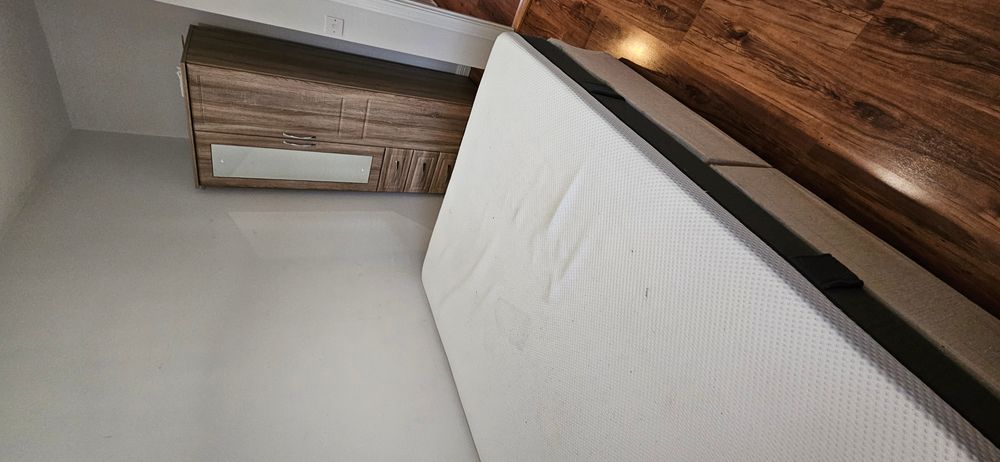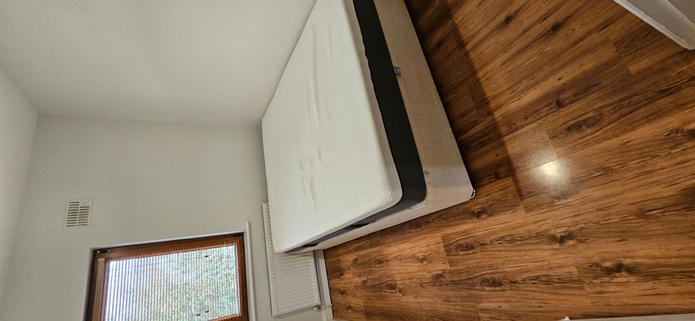 Laminate flooring, radiator, power points.