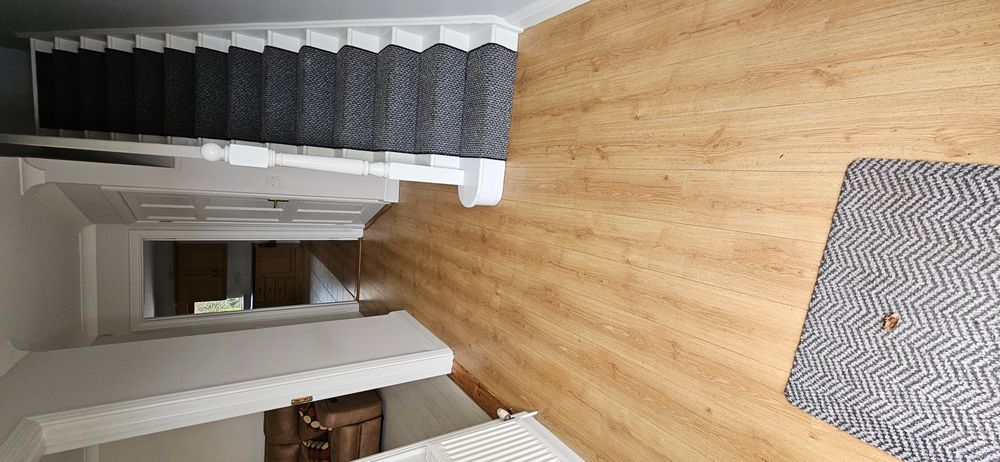 Laminate flooring, wooden stairs with carpet runner, radiator, phone point, ceiling coving, wc under the stairs with tiled floor, wc, whb, radiator and extractor fan.