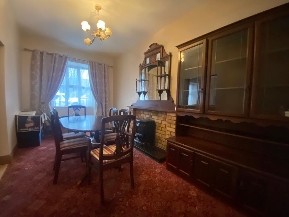 The home comprises four well-proportioned double bedrooms, offering flexibility for family use, guests, or home working. At ground floor level, there are three separate reception rooms, including a comfortable living room with a solid fuel stove, a formal dining room with stove, and an additional sitting room, also featuring a stove—each space providing a cosy and inviting atmosphere.