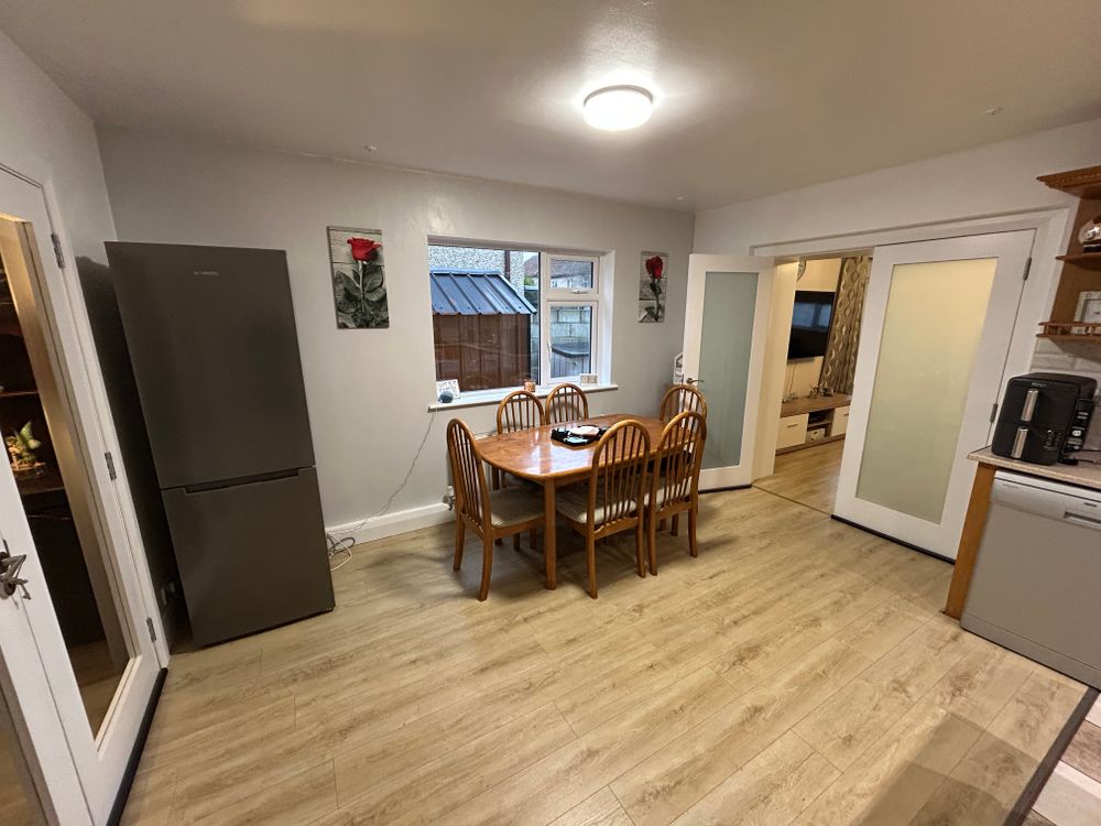 Dining Area: The dining area is generously proportioned and finished with a laminate floor. A window to the side of the property provides excellent natural light, making this an ideal family dining space.