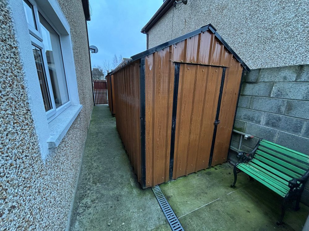 The property benefits from a generous tarmacked driveway to the front providing ample off-street parking. To the side and rear, there are enclosed outdoor areas comprising paved pathways, a small yard, and a modest grassed section.