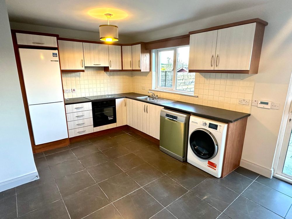 New to the rental market and presented to an excellent standard this spacious four bedroom townhouse is situated on a small private development on the outskirts of Collooney village. This property offers amenities within easy reach that include local schools, Bar and Restaurant, Centra and its proximity to Sligo town and the N4. This property is finished to a high standard, with a spacious open plan modern kitchen dining separate sitting room with solid fuel stove together with four spacious bedrooms master en-suite and bathroom and downstairs Wc. Externally the property offers an enclosed rear garden with patio area, garden shed, and off street parking.