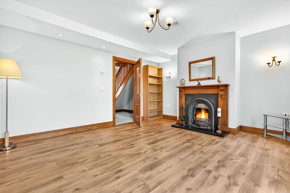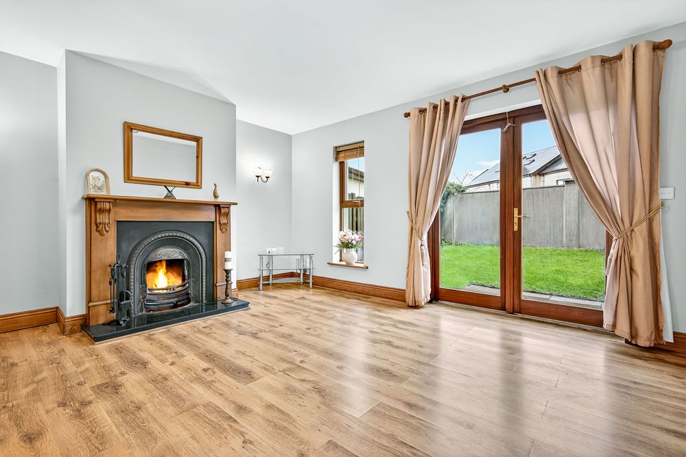 Laminate wood flooring. Open feature fireplace. Patio door to rear garden.