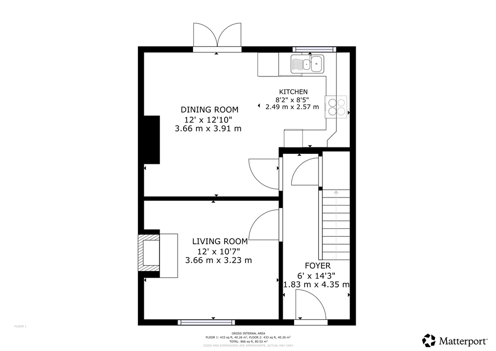 Internally, the accommodation extends to approximately 83.44 sq.m and is thoughtfully laid out. The ground floor comprises a bright and airy living room, a modern fitted kitchen/dining area with access to the rear garden, and a well-appointed family bathroom. Upstairs, there are three bedrooms consisting of two generous double rooms and one single bedroom, perfect for a home office or nursery.