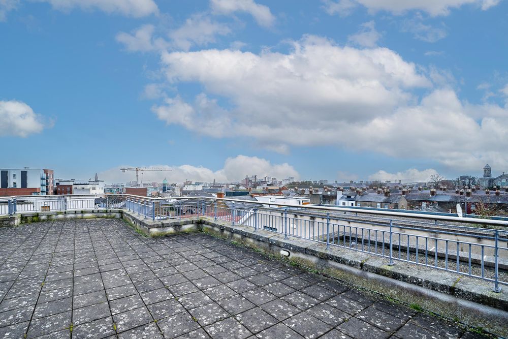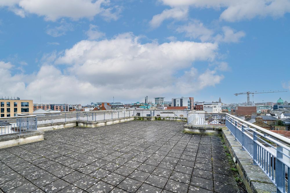 This exceptional property features an entrance hall with laminate floors and a storage room. The laminate floors continue to a spacious south west facing bedroom with sophisticated fitted wardrobes. The generous sized family bathroom boasts mosaic floor tiling, partially tiled walls and also incorporates the hotpress. The light filled open plan living room, dining area and kitchen is an ideal place to relax and entertain while the stylish kitchen enjoys splashback tiling and plenty of counter and cupboard space. This amazing apartment also benefits from a secure designated car space and is serviced by a lift and a rooftop terrace.