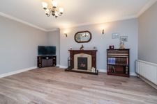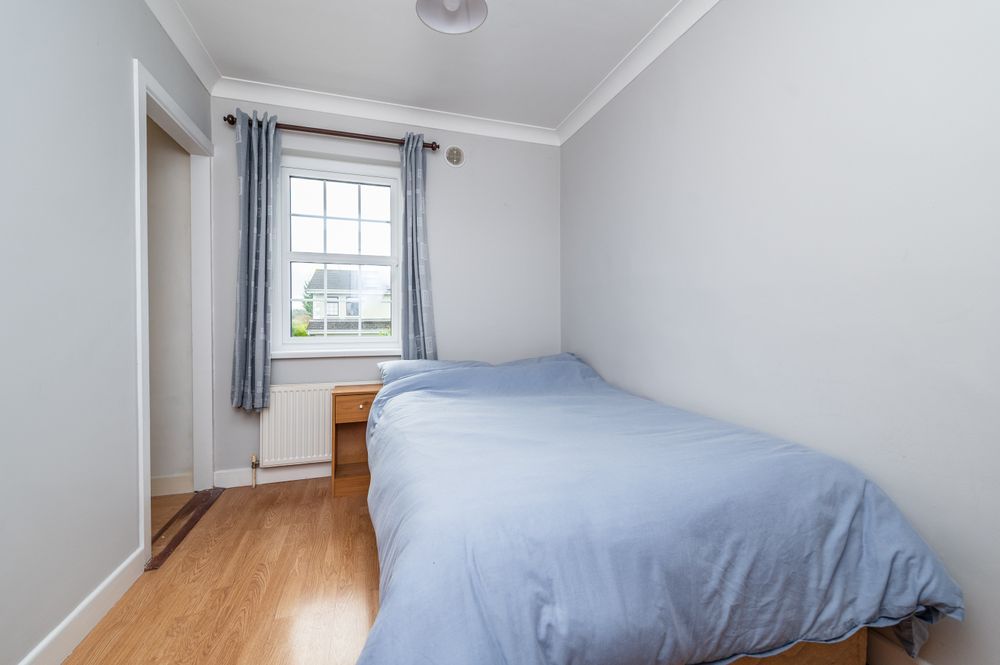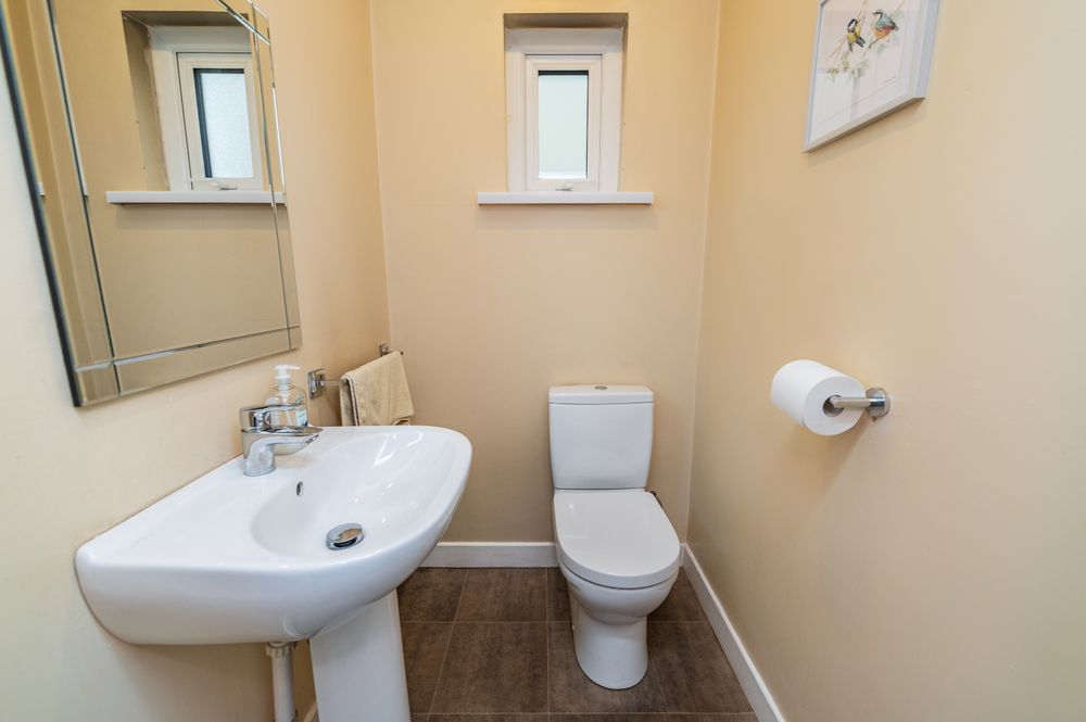 The accommodation begins with a welcoming entrance hall leading to a comfortable sitting room featuring a fireplace with back boiler and insert stove. To the rear, the kitchen/dining room is fitted with built-in floor and eye-level units and opens to the rear garden through French doors. A utility room, guest WC and internal access to the garage are located just off the kitchen. Upstairs, there are four well-proportioned bedrooms, including a main bedroom with ensuite, along with a family bathroom.