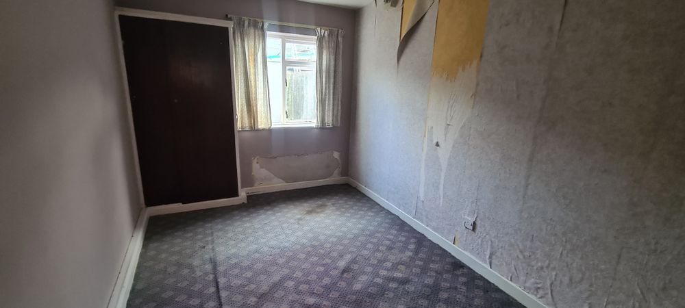 Bedroom to the front which is spacious, carpeted, 2 no. windows to front, wallpaper, power points, coving on ceiling.