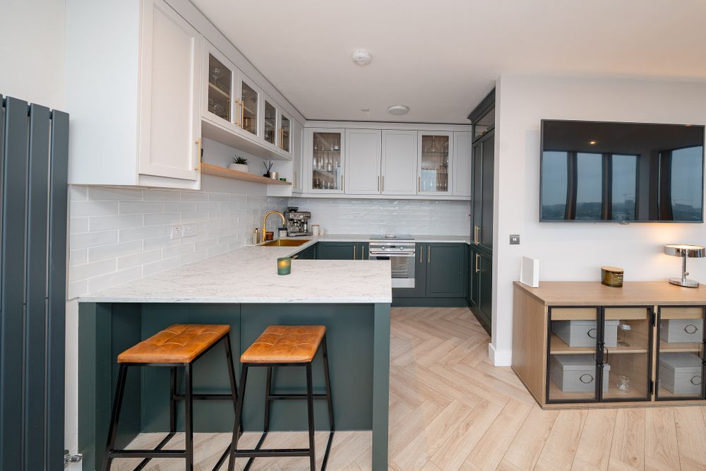 Exceptional two bedroom open plan eight floor apartment with a stylish interior and amazing views of the city skyline.