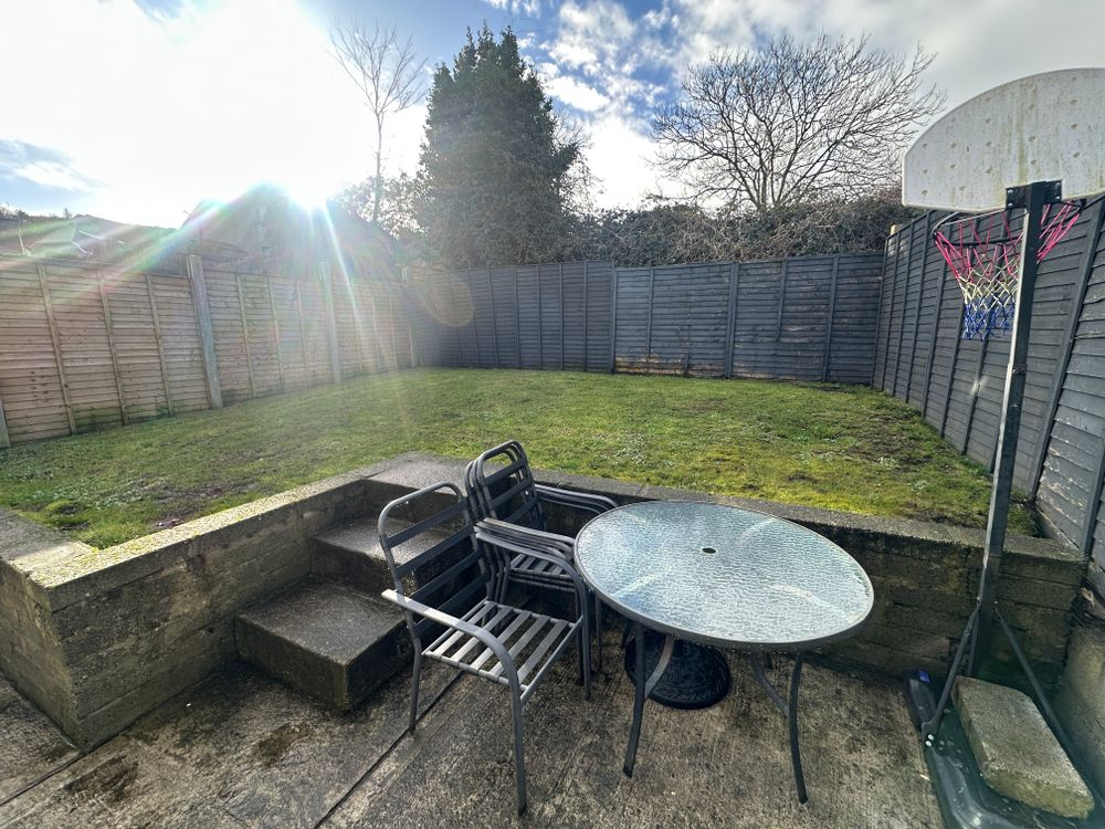 Enclosed rear garden with patio area.
