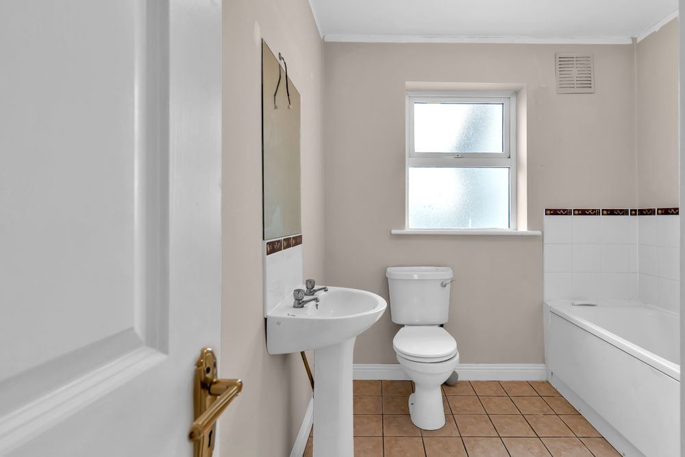 with w.c, w.h.b. & bath. Tiling to floor and around bath. Airing cupboard.