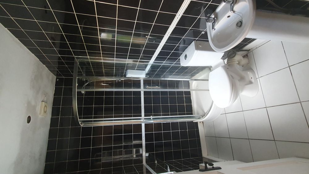 Shower, Bath, W.C., W.H.B., tiled wall and floors