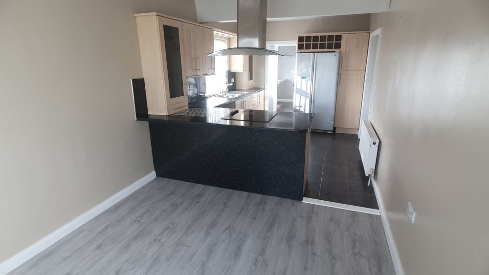 Tiled worksurfaces, plumbed for washing machine, tiled floor, back door