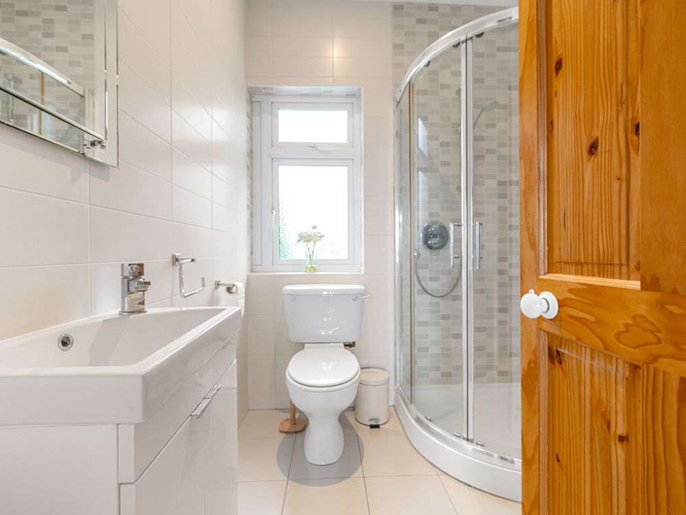 Upstairs, a spacious landing leads to three well-proportioned bedrooms and a large family bathroom. The principal bedroom is a great size, complete with carpeting, built-in wardrobes, and a neatly tiled ensuite. The remaining two bedrooms are also generous in size, offering bright, comfortable spaces. The main bathroom is beautifully tiled and finished to a high standard, providing both style and practicality for everyday family life.