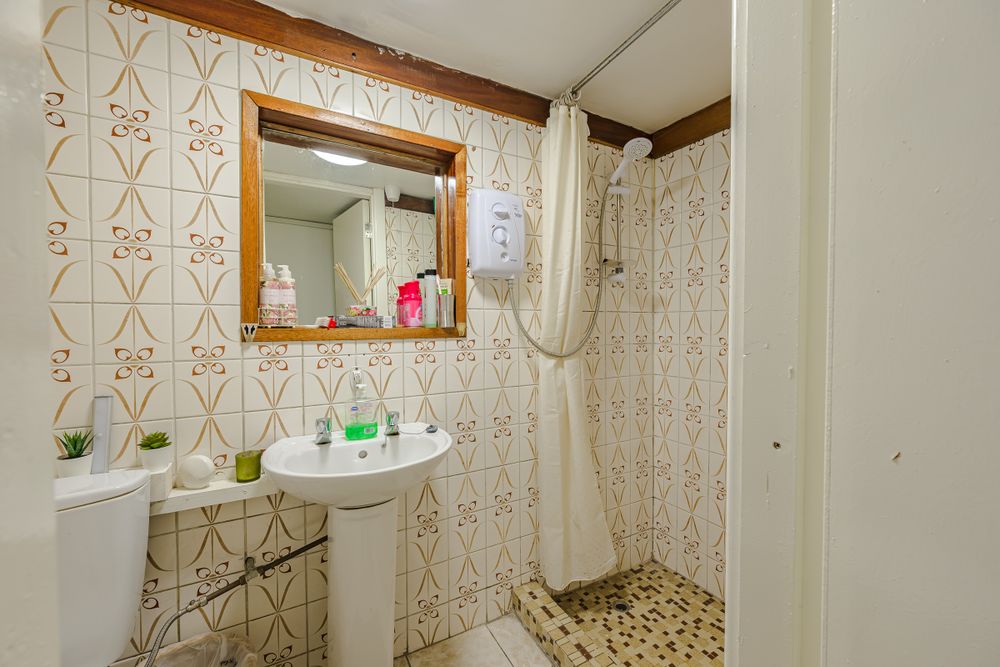 Fitted with three piece bathroom suite to include pedestal sink with mirror overhead, wc and walk in shower fitted with electric shower. Fully tiled.