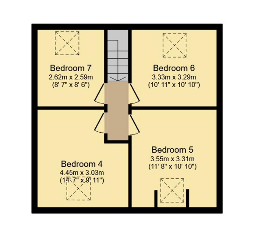 In need of a little TLC this room is located at first floor level and is a room that could easily become bedroom 8 in this property or alternatively could be fitted out as an independent bathroom given that it is located above the family bathroom at ground floor level. Gable window for natural light and ventilation.