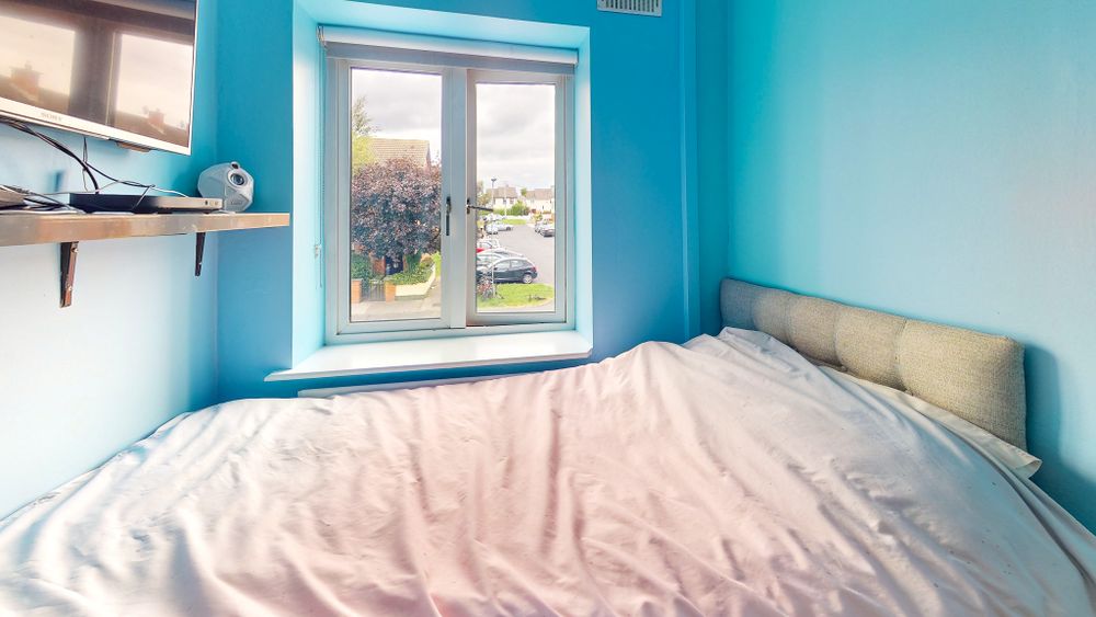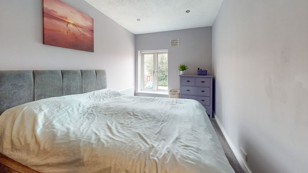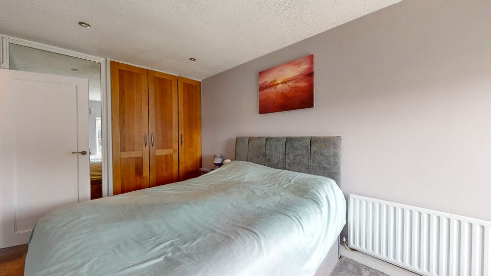 Double bedroom overlooking the cul de sac below features an excellent range of Shaker style built-in wardrobes.