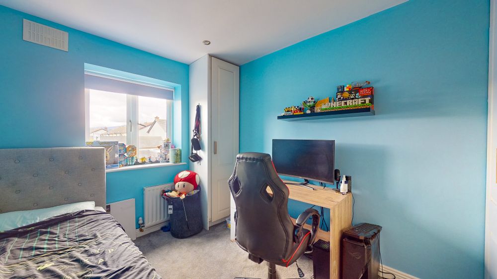 Double bedroom overlooking the rear garden and boasting mountain views in the distance again featuring built-in wardrobes.