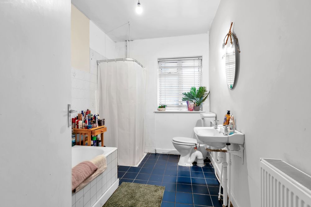 with w.c., w.h.b. & bath, and separate shower . Tiled floor and part wall tiling.