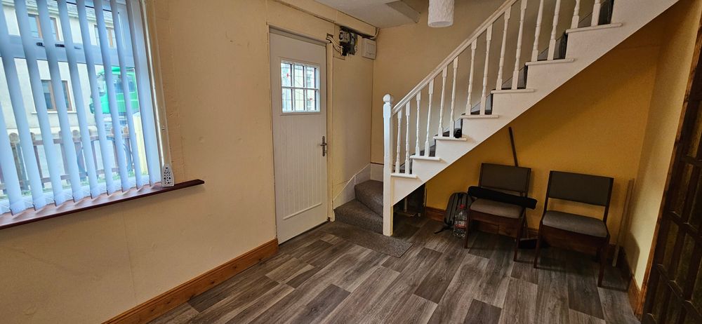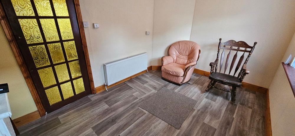 uPVC front door, wood effect vinyl flooring, carpeted stairs, radiator, power points.