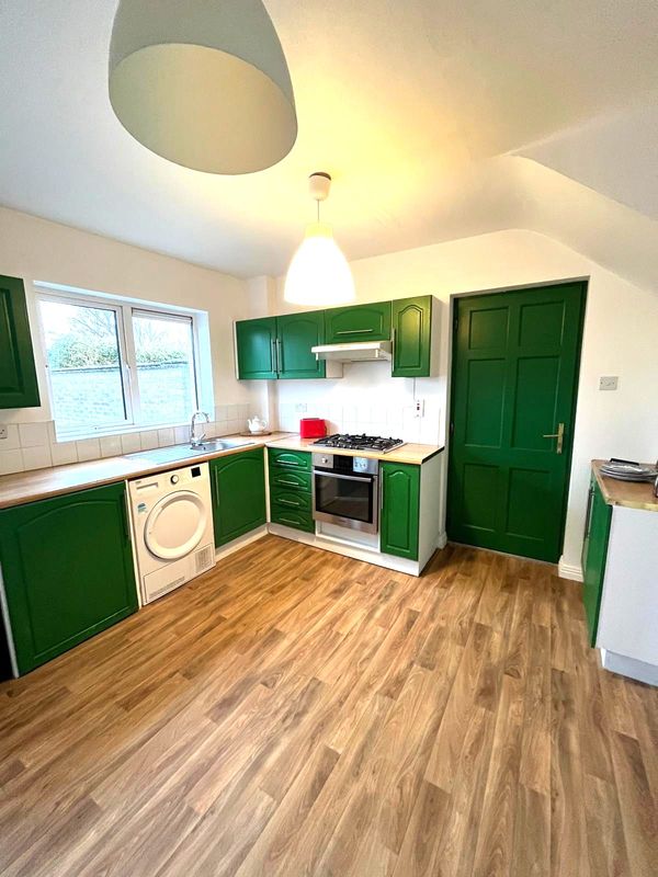Fully fitted Painted Kitchen , Tiled Splashback , Gas Hob , Vinyl Floor Covering and Views over Private Enclosed Rear Garden