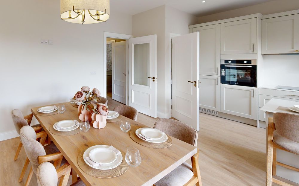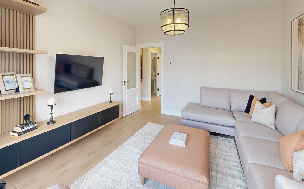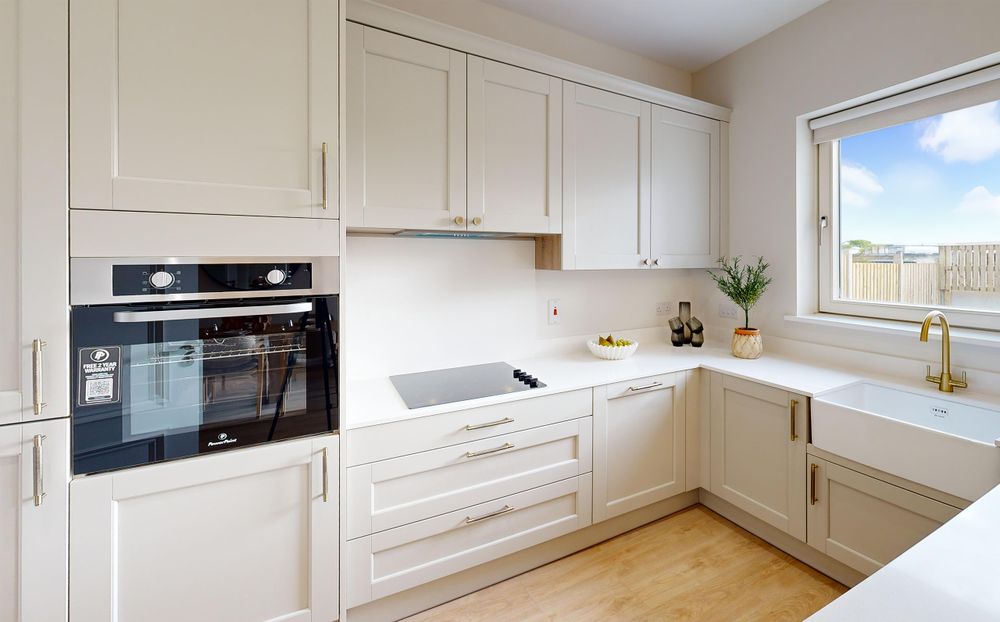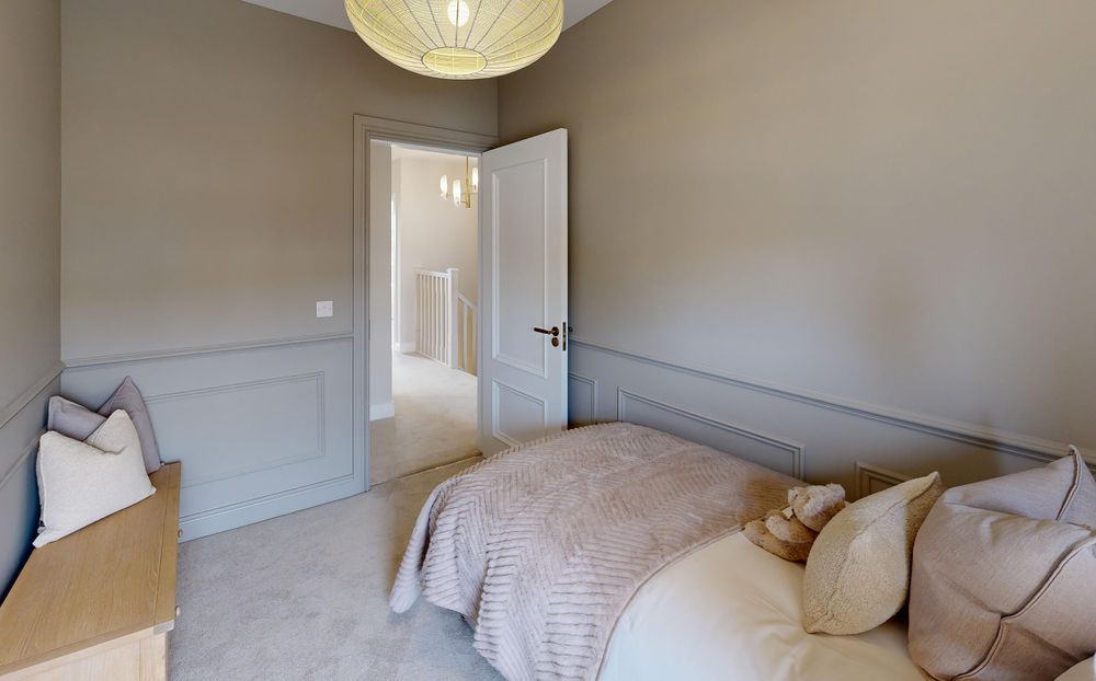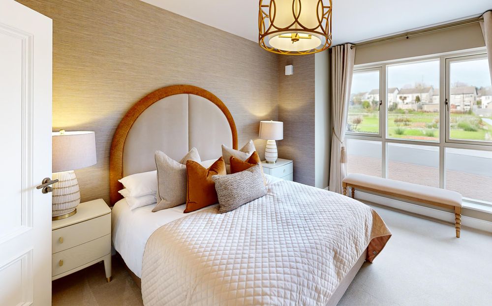 Luxurious chestnut plank laminated oak wood flooring enhances the ground floor living spaces, while bedrooms, halls and stairs are finished with plush, premium carpets. Bathrooms and en-suites feature elegant Sonas sanitary ware, combining style with long-lasting durability.