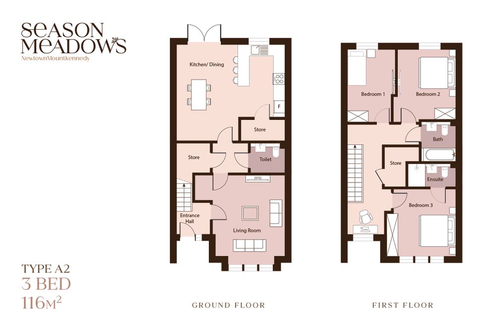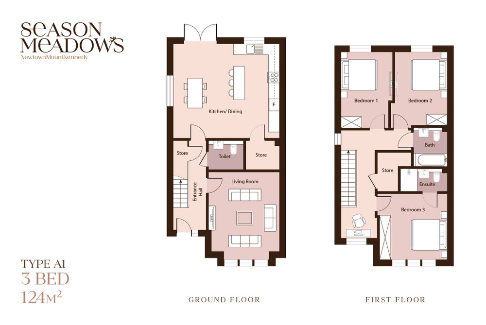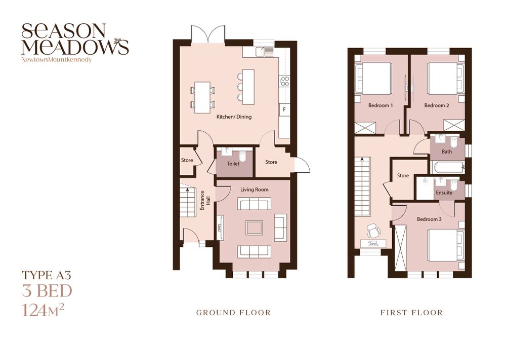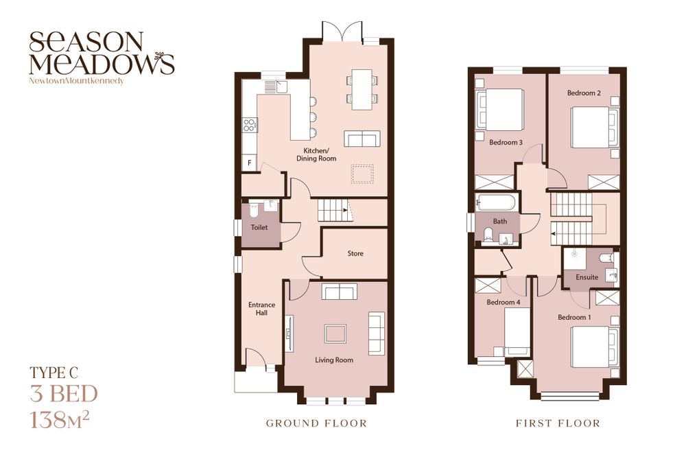 Newtownmountkennedy, located in the heart of County Wicklow, offers an exceptional lifestyle surrounded by natural beauty while remaining perfectly connected for modern living. Known for its warm community spirit and flourishing local amenities, Season Meadows is just a 4 minute walking distance from the village and all amenities.
