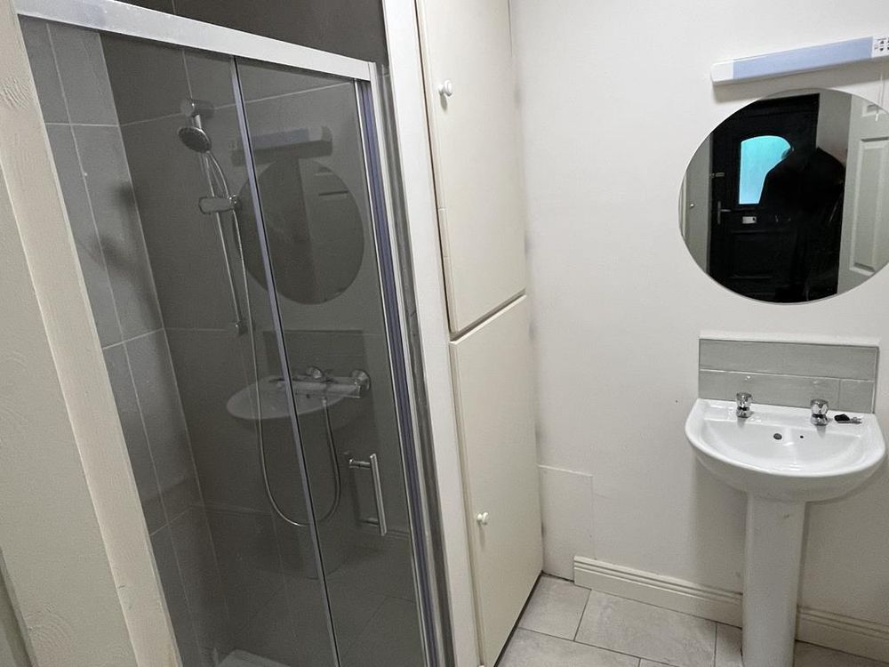 Tiled floor & shower cubicle, power shower, hotpress off.