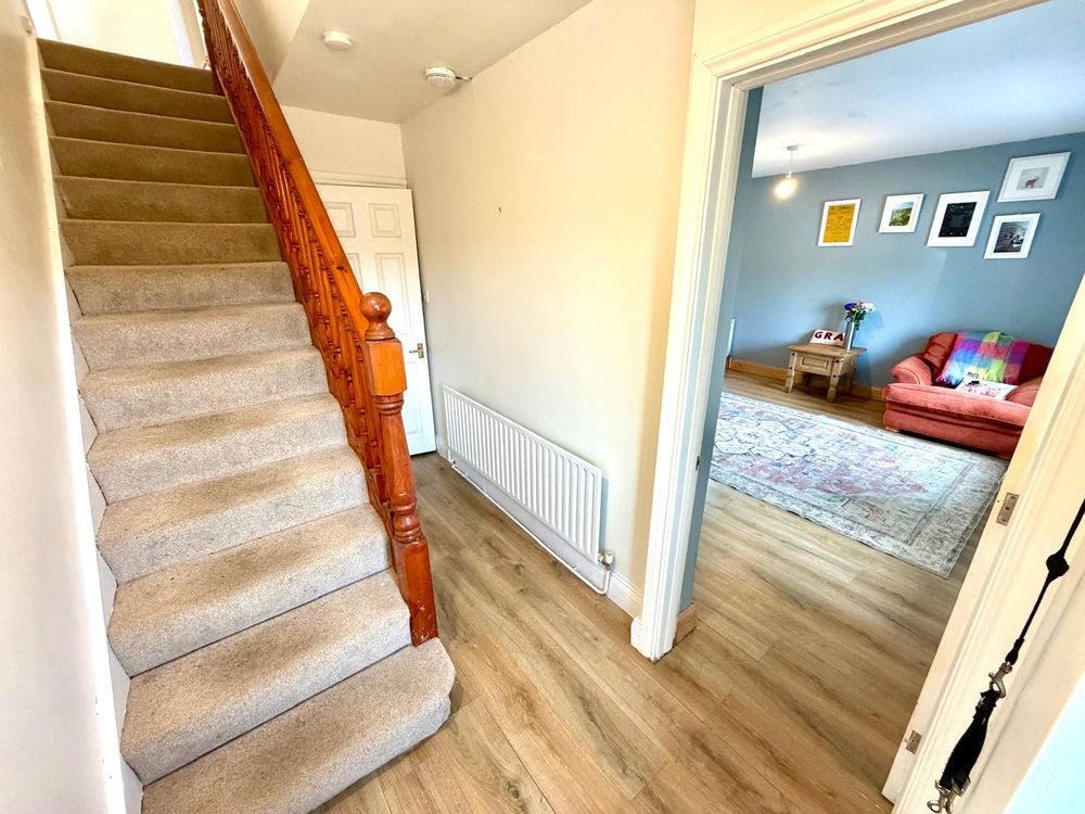 Set on an elevated and private site extending to circa one acre, this 3-4 bedroom detached dormer-style residence offers an exceptional blend of spacious living accommodation and beautifully maintained outdoor space, complemented by a large detached garage. The ground floor is thoughtfully laid out to suit modern family living, featuring a welcoming entrance hall leading to a bright and expansive open-plan kitchen, dining, and living area, ideal for both everyday living and entertaining. Additional ground floor accommodation includes a well proportioned separate sitting room, a practical utility room, and a modern shower room. Upstairs, the first floor comprises three generous double bedrooms, including a superb master suite complete with en-suite facilities and a private balcony overlooking the rear gardens, a contemporary family bathroom serves the remaining bedrooms. Externally, the property is approached via a gated and tarmac driveway and enjoys mature, landscaped gardens that provide both privacy and tranquillity. A paved patio area offers the perfect setting for outdoor dining and relaxation, while the large detached garage provides excellent storage or potential for a variety of uses. This home presents a rare opportunity to acquire a spacious residence in a picturesque setting, ideal for those seeking comfort and privacy. Viewings strongly advised and strictly by appointment.