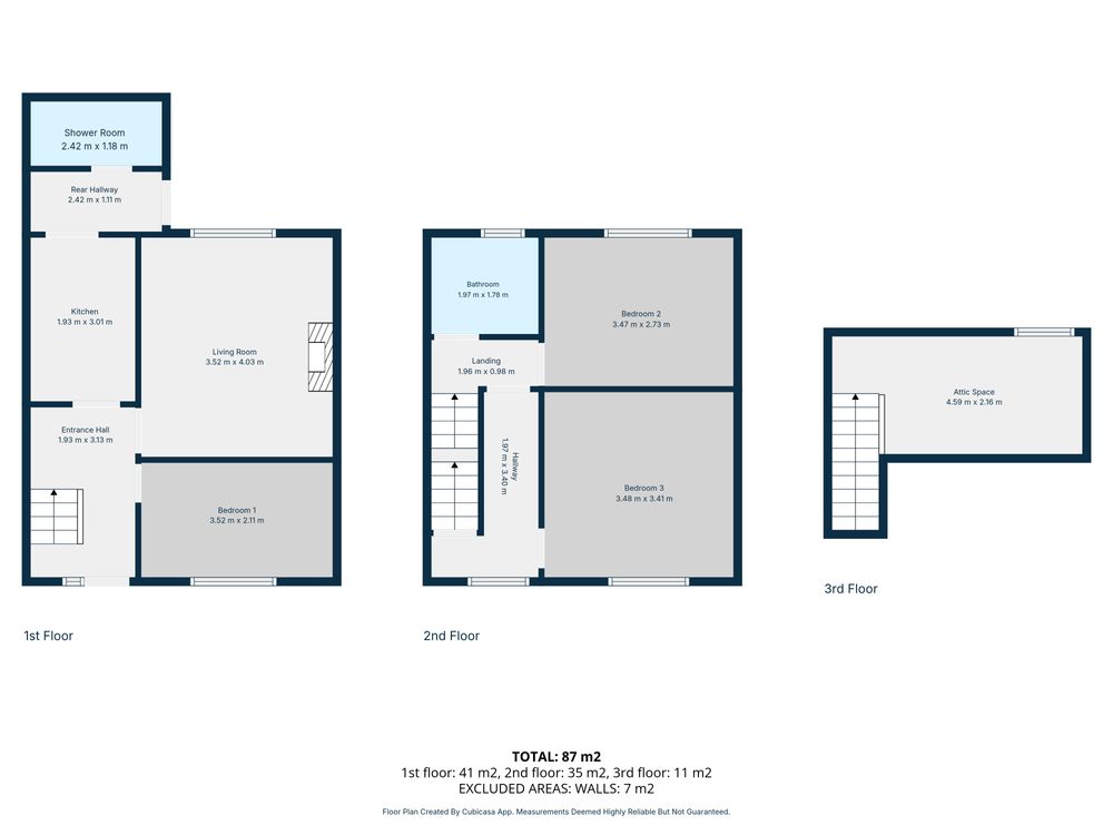 Fully tiled. Pumped mains shower. WC. Wash handbasin.