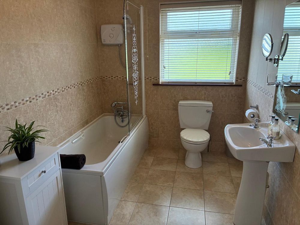 Triton T90sr electric shower, tiled shower suite and splashback, window provides for natual ventilation.