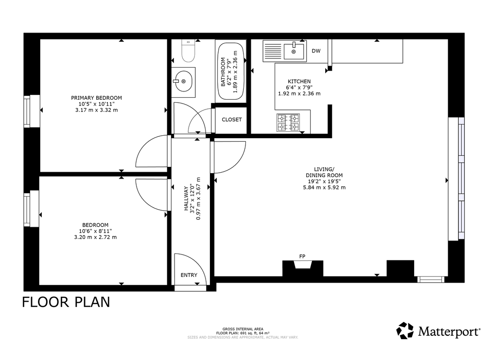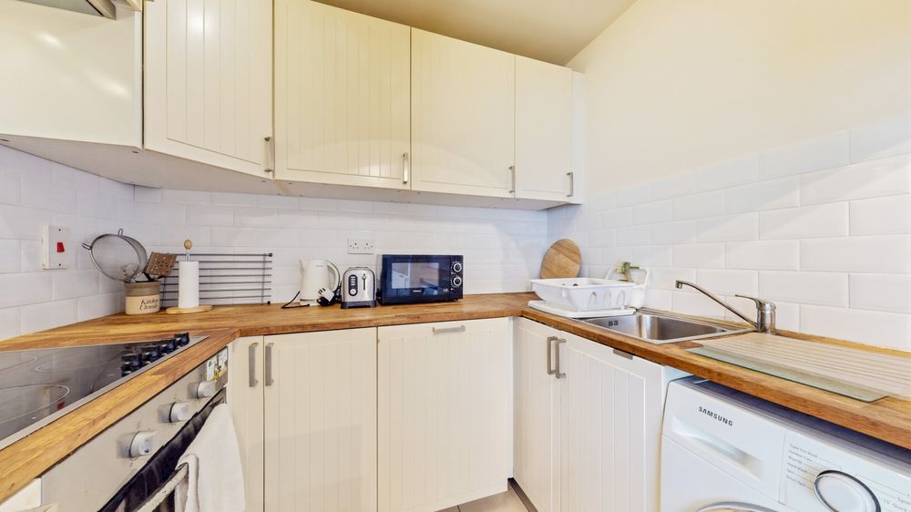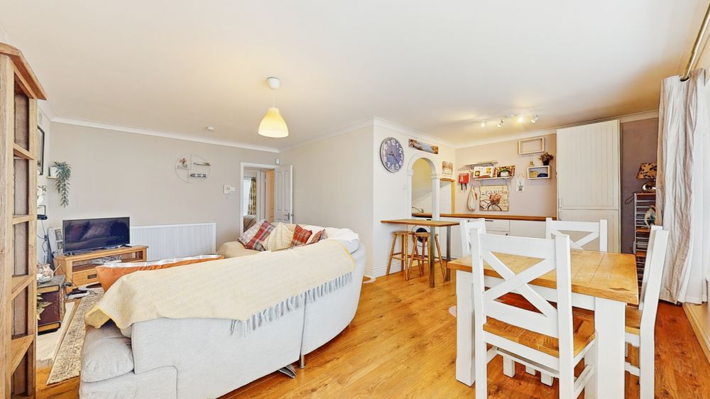 The living accommodation is both spacious and inviting, with a generous living/dining area perfect for relaxing or entertaining, complemented by a separate kitchen. Two well-proportioned double bedrooms provide excellent accommodation, serviced by a main bathroom.