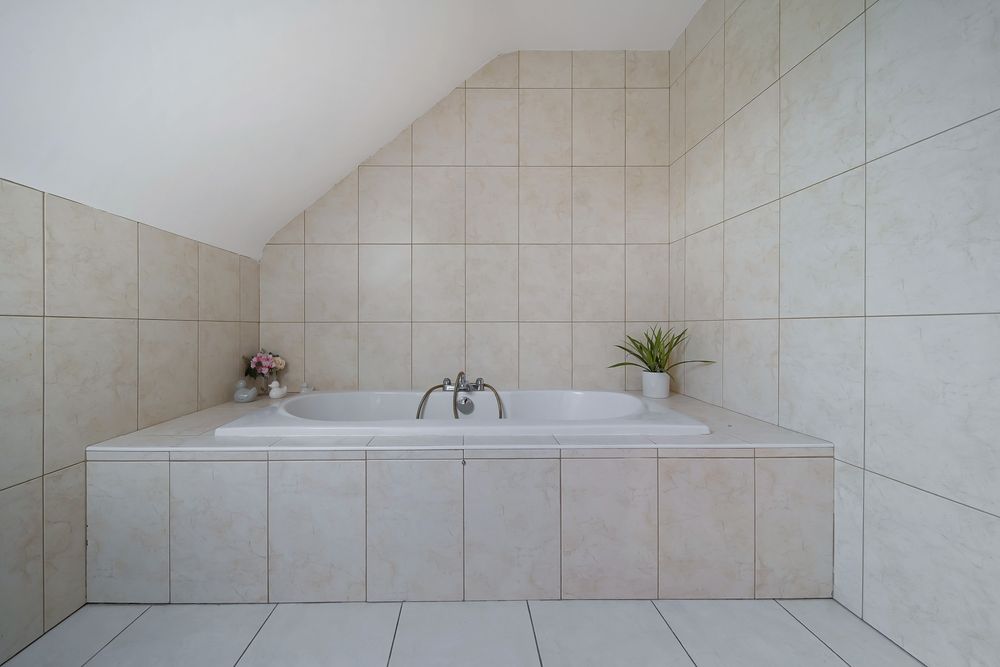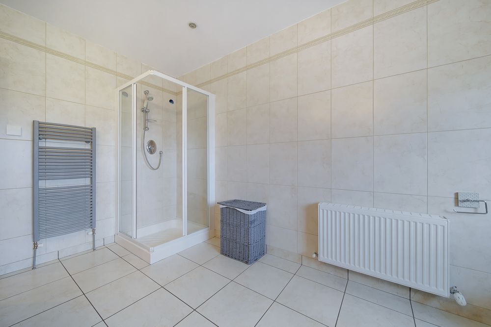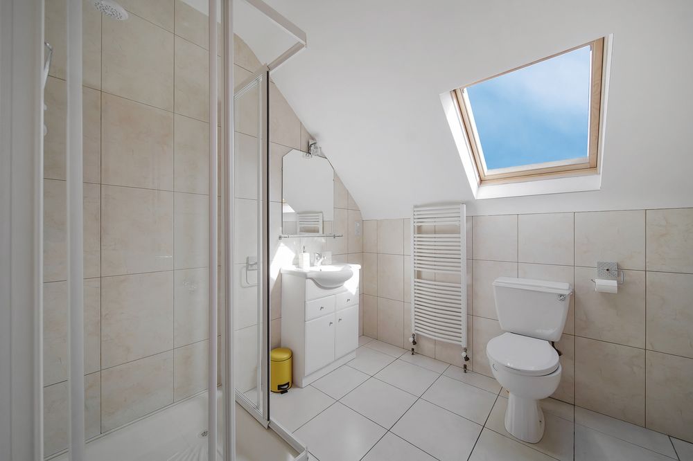 Tiled floors and walls, W.C., W.H.B., Shower and Bath