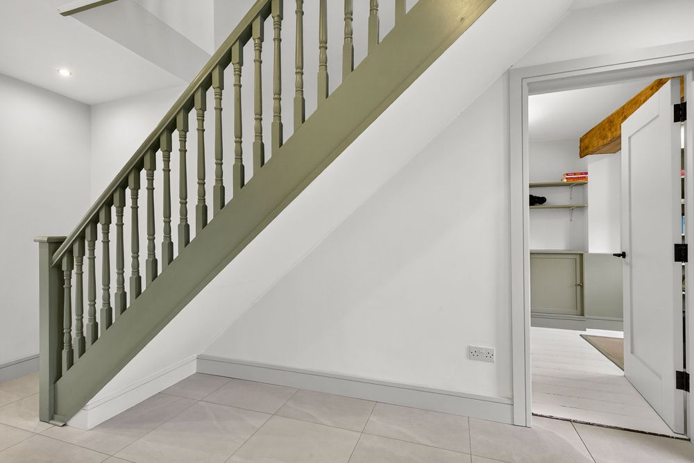 Finished with beautiful tiled flooring. This area includes the stairwell leading to the first floor.