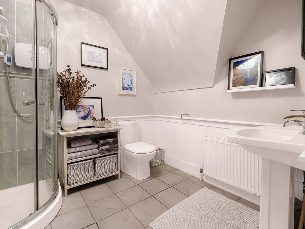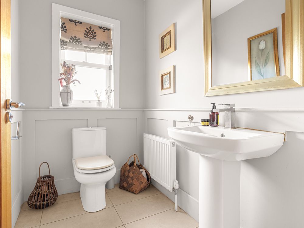 Upstairs, the carpeted stairs and landing create a sense of warmth and comfort. The first floor hosts four generously proportioned bedrooms, all finished with wooden flooring. The principal bedroom features a superb walk-in wardrobe and a beautifully styled ensuite bathroom finished with luxury fixtures and fittings. The second bedroom also benefits from its own neatly tiled ensuite. The remaining two bedrooms are bright and spacious, while a large family bathroom completes the upstairs accommodation.