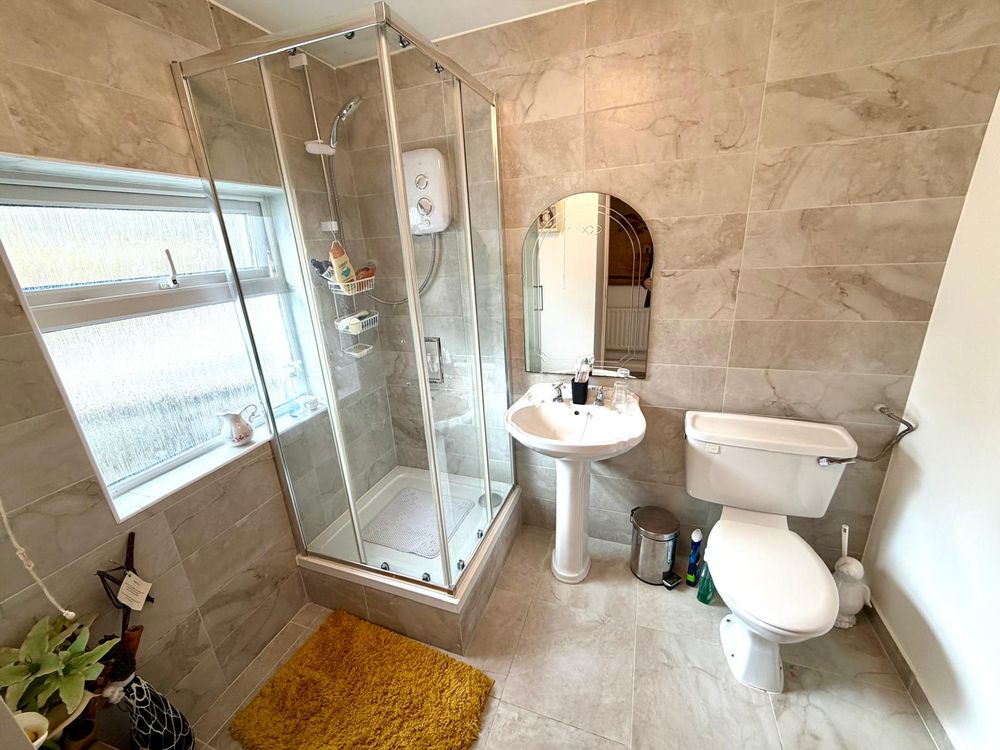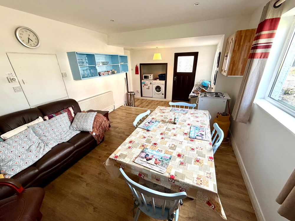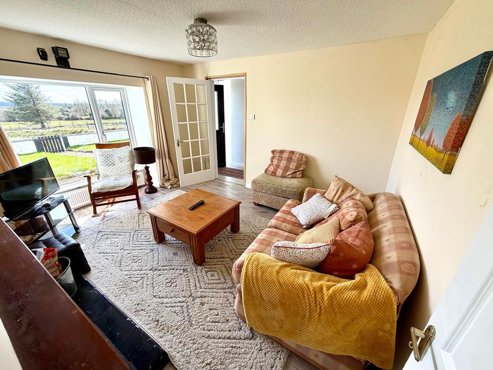 The accommodation comprises a welcoming entrance hall, a bright and spacious kitchen/dining area ideal for family living and entertaining, and a generous sitting room featuring an open fireplace, creating a warm and inviting atmosphere. There are three double bedrooms and a stylish, modern bathroom, all finished to a high standard. Externally, the property benefits from ample parking and a range of useful outbuildings, offering excellent storage or potential for further use.