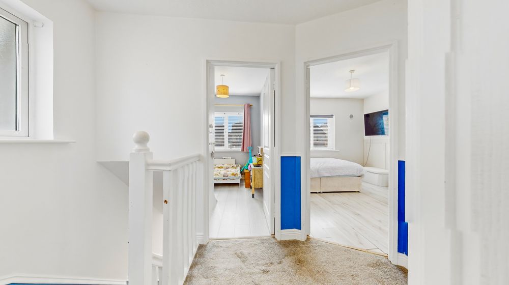Upon entering, you are welcomed by a spacious hallway featuring a convenient downstairs WC. The home boasts a bright and airy living space with natural light flowing seamlessly from the living room through to the open-plan dining and kitchen area. This space opens up onto a large, low-maintenance rear garden – perfect for those summer days relaxing or entertaining.