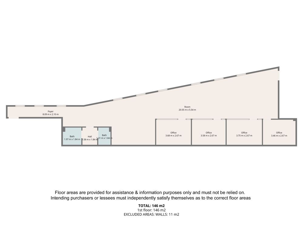Open plan reception– 20 x 5m