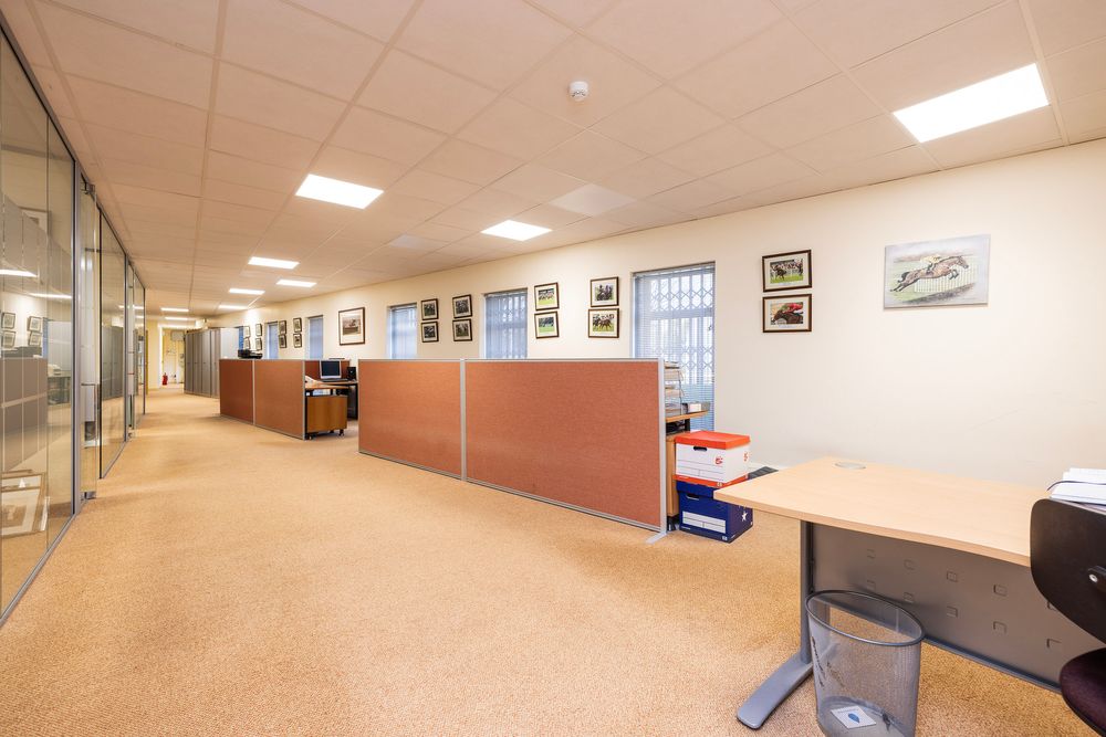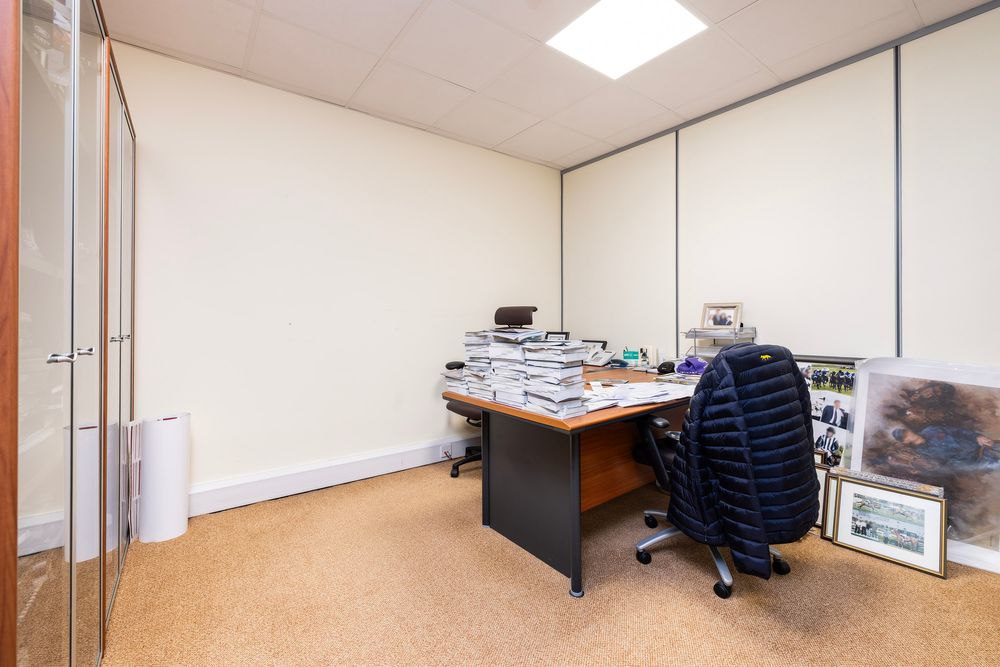 Unit E9 is situated on the ground floor of a multi-unit office block built to a high specification of block construction with red brick facing and double-glazed windows. The unit comprises 154 square meters with a spacious open plan reception area with four workstations with carpeted flooring. The unit is flooded with natural light from the windows and is illuminated by recessed lighting. Three attractive private offices with frosted glass. There is also a large kitchen area perfect for staff.