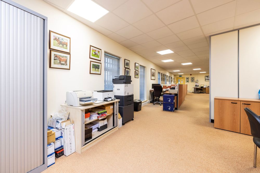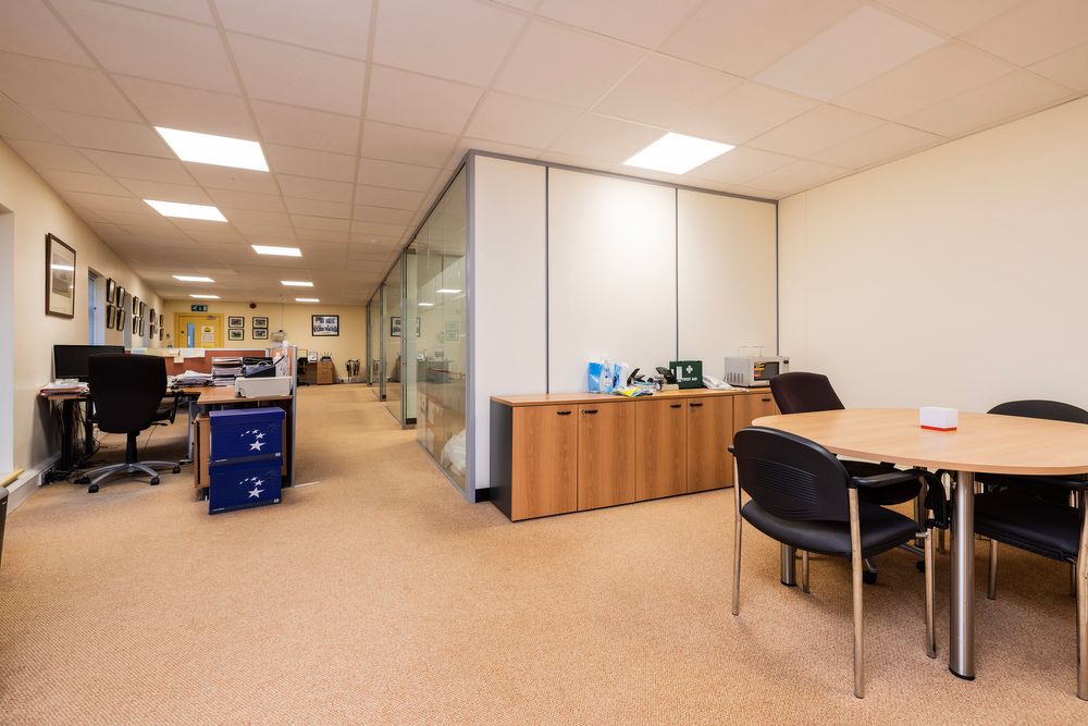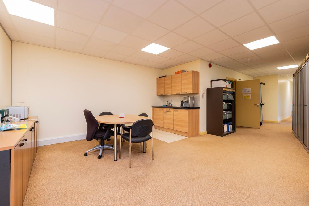 Upon entering the unit, you are met by a bright and spacious open plan office space with carpeted flooring. There is a kitchen space with fitted wall and floor units incorporating a stainless steel sink to the side of the office space perfect for staff